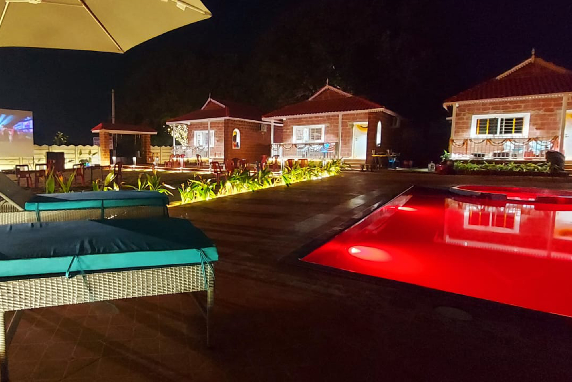 Guests can enjoy a swimming pool, rain dance, spacious open lawn and campfire for a fun and relaxing countryside experience and 18+ activities as well, making it ideal for weekend getaways.